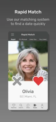 - Rapid Match: Are you in a rush and only want to look at photos? Decide which widowed man and woman you like here instantly by swiping right or left