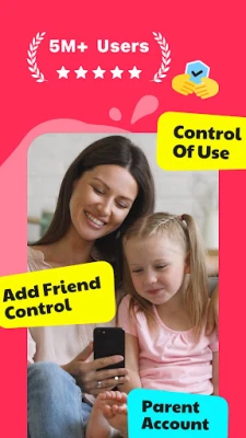Both users must approve each other to become friends. A parental password allows parents full control over app usage.