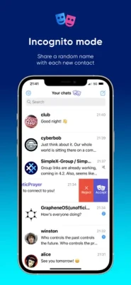 - incognito mode - unique to SimpleX Chat.