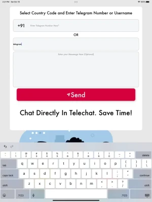 Send tele messages to any numbers or username with the Telechat app. This app helps you to open a Telegram™? App with any username without even saving it in your contact list. This app helps you in situation where you have to message some unknown person without saving their contact.