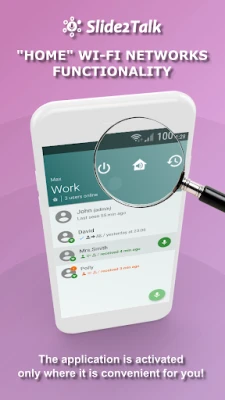 • The application works as an onlinе walkie talkie and transmits vоice messages via the cloud. However, if users are on the same Wi-Fi network, then the Slide2Talk wоrks as walkie talkie offline and sends audio directly between users' devices. It doesn't even require the Internet.