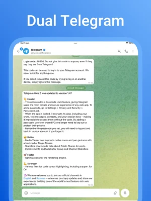 1. Dual Telegram: enables you to use 2 different accounts on the same device: one of them personal, the other for business.